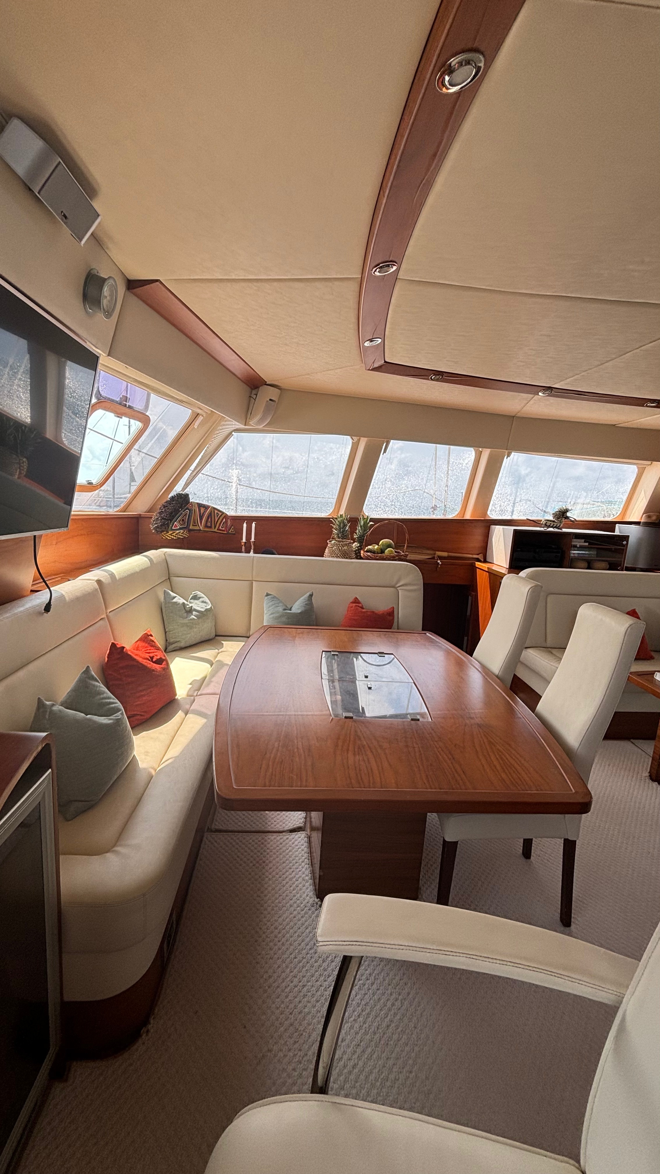 Relax on the spacious deck of Marea, where open-air lounging areas, a shaded cockpit, and an elevated flybridge offer breathtaking views of the San Blas archipelago. Take a refreshing dip in the crystal-clear Caribbean waters right off the stern, or glide across the calm lagoon by paddleboard. Whether you’re unwinding in the breeze on the flybridge lounge, enjoying an al fresco meal under the stars, or napping in the shade with the sound of the sea, Marea invites you to experience barefoot luxury at its finest—every day, every moment.